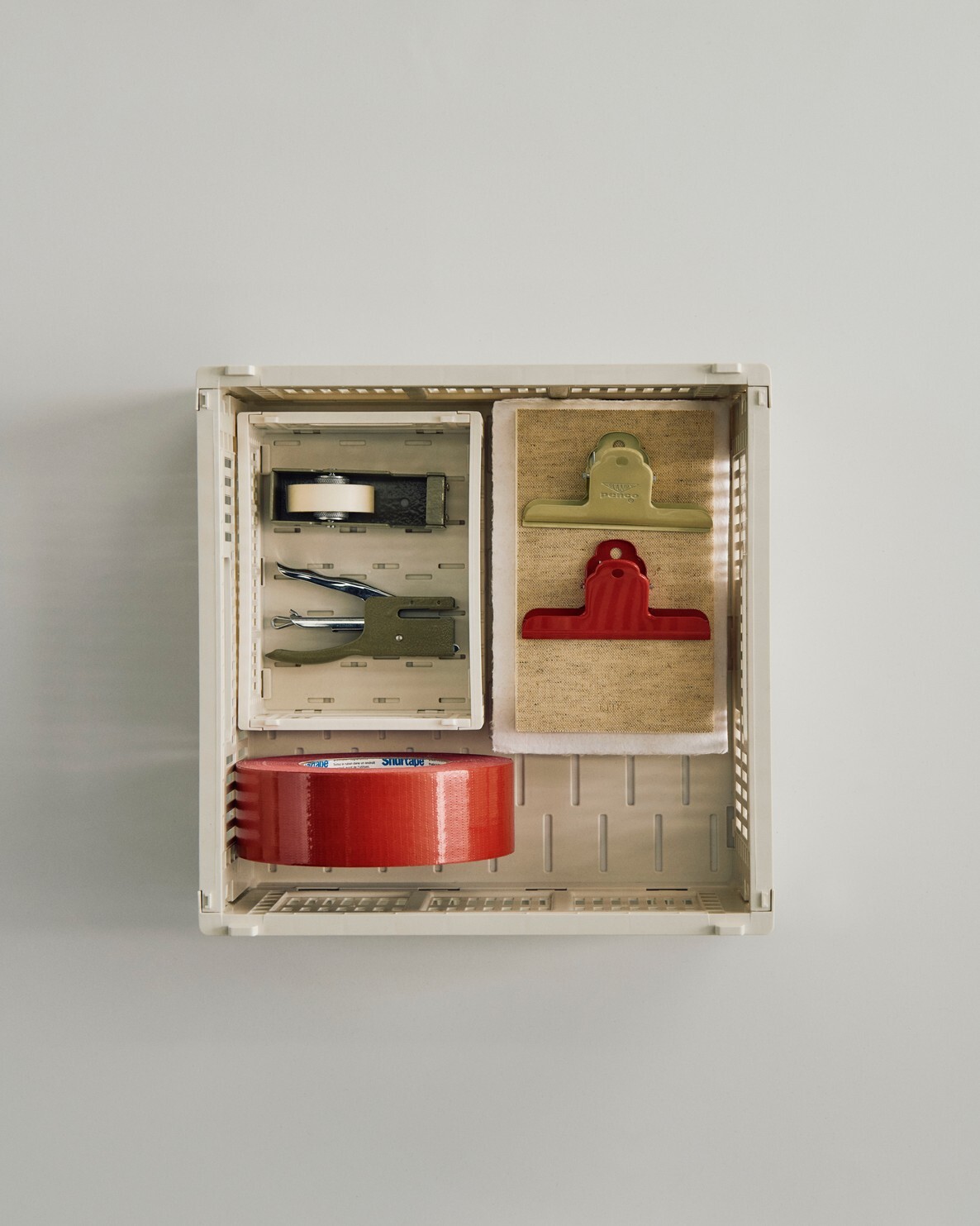 這一招是收納控的必修課!HAY 的尺寸設計經過精密計算,Mini 可以完美卡進 S 號之中,S 號可以卡進 M 號之中。這種分層管理特別適合零件多的場景,如文具控的書桌、烘焙器具或手工藝材料,讓每一件小物都有家可歸。