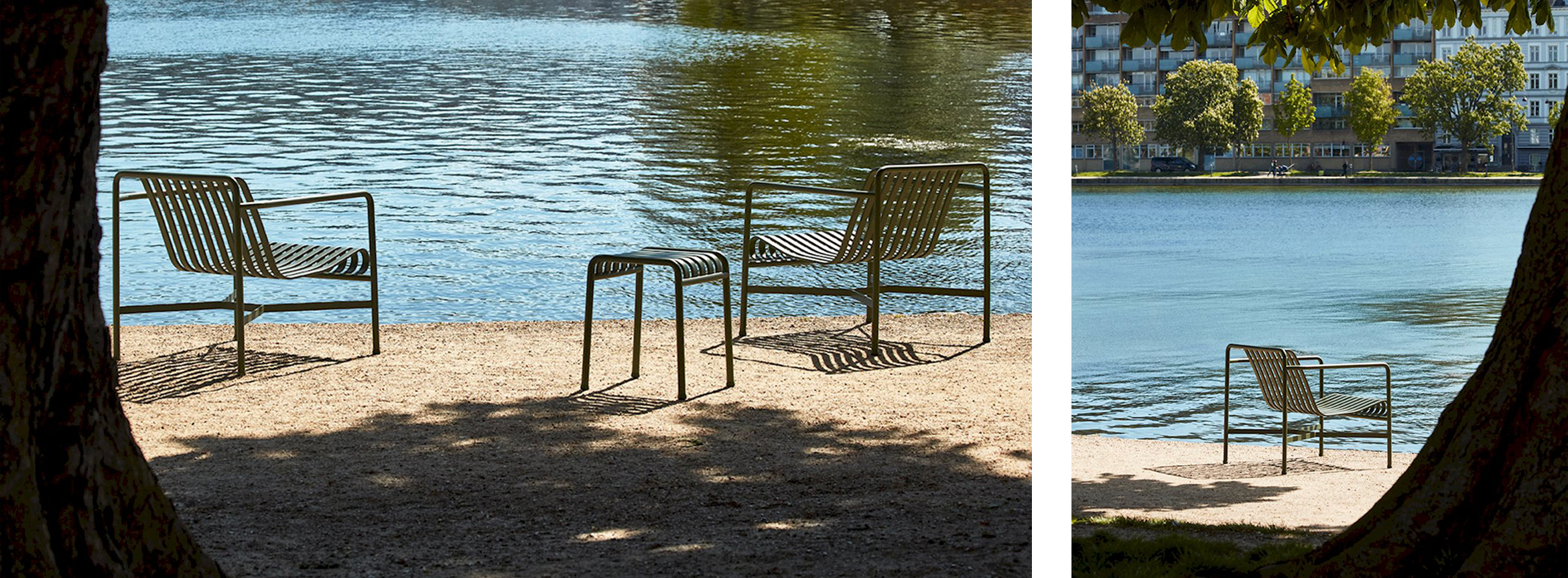 HAY Palissade 系列中的一系列戶外家具來裝飾其臨水露台。