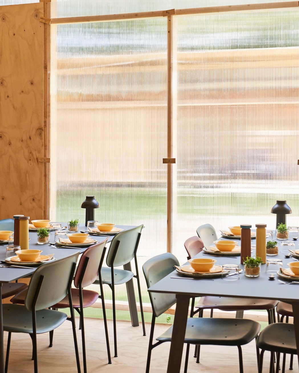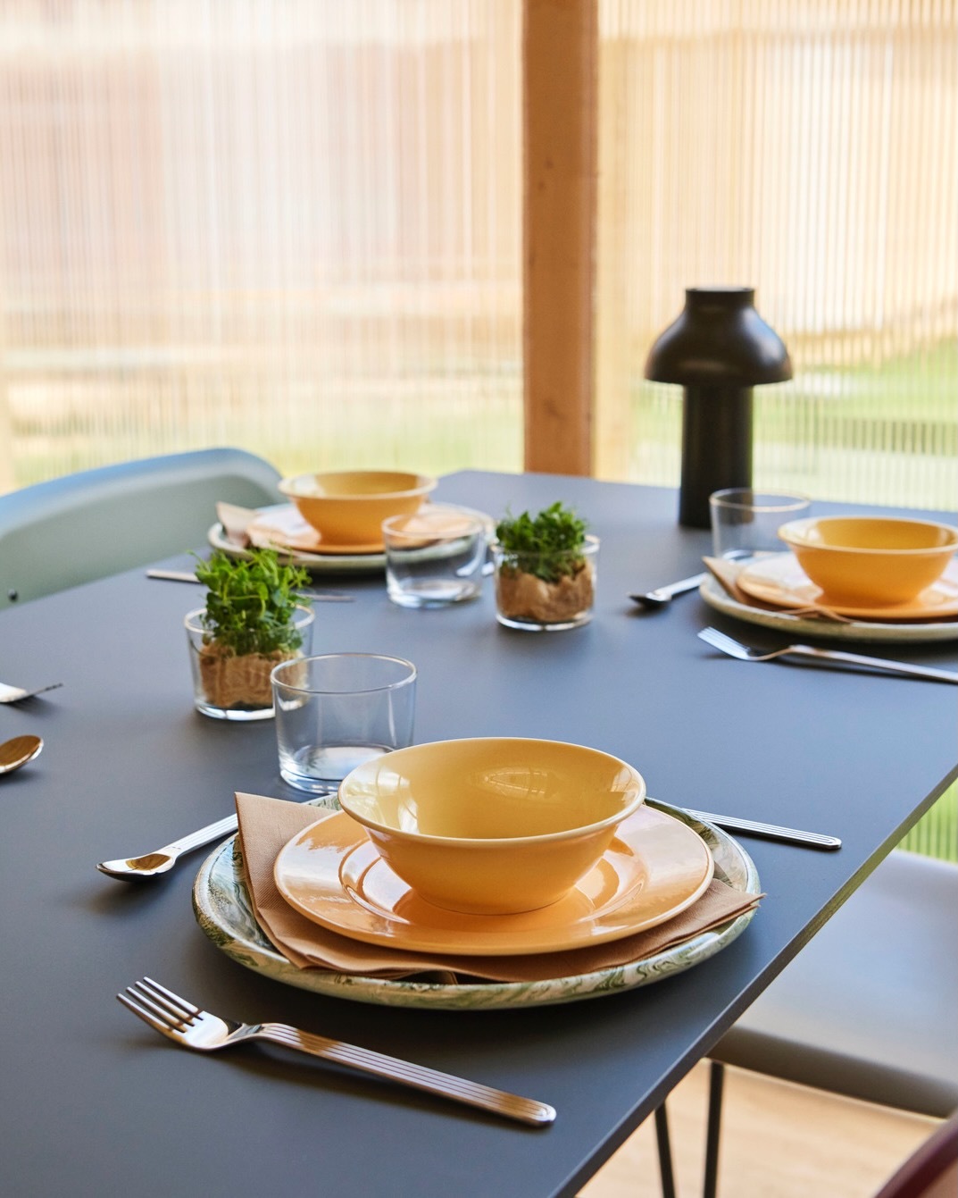 選擇了Soft Edge椅子和搭配彩虹和Soft Ice餐具的CPH Deux桌子,