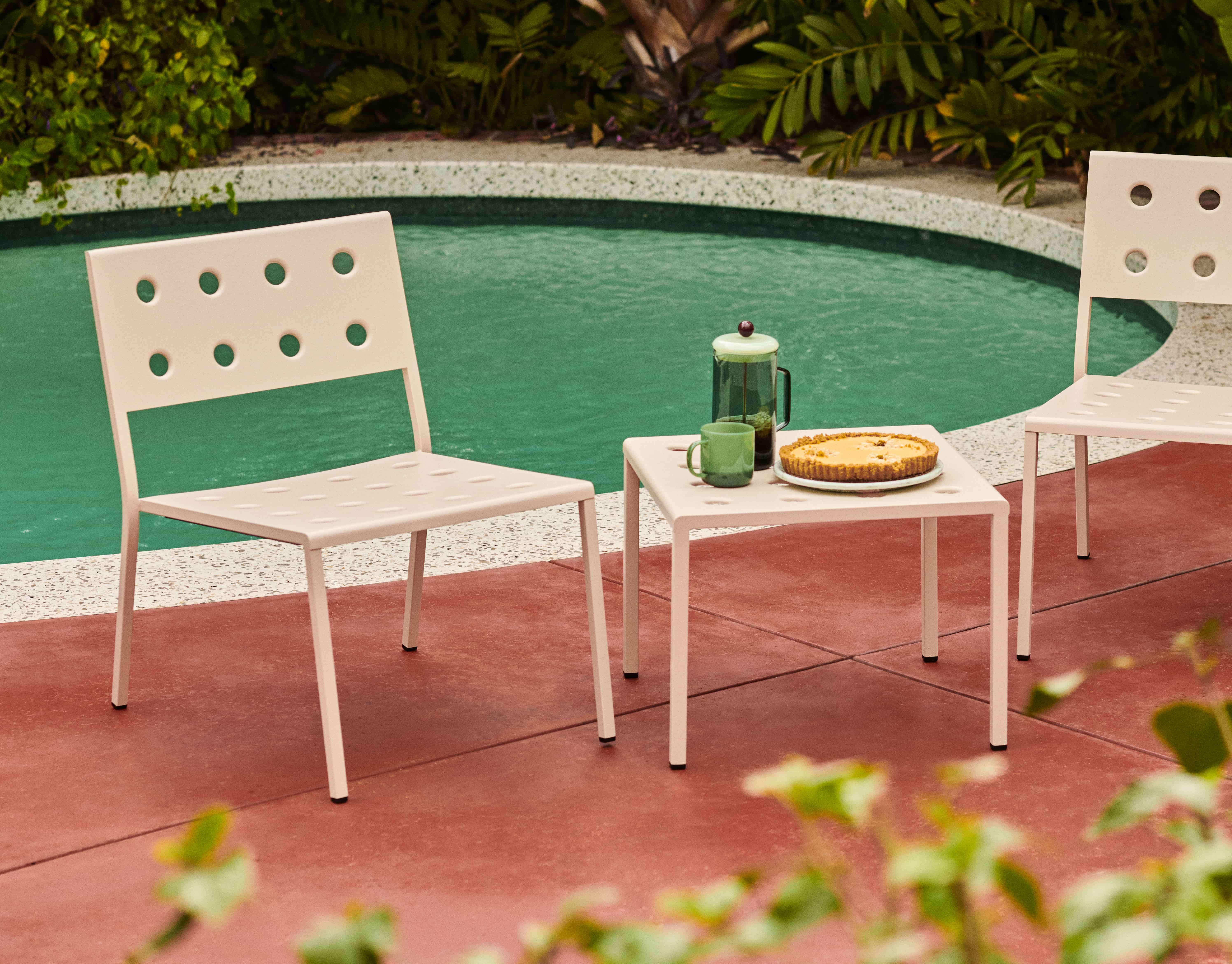 Balcony 是由 Ronan 和 Erwan Bouroullec 為 HAY 設計的戶外家具系列,包括椅子、桌子和休閒椅。 圓孔軟化了方形設計,不僅賦予該系列獨特的表達方式,還強化了結構。 Balcony Lounge Chair 採用粉末塗層鋼製成,塗有戶外底漆,具有最佳的耐用性,非常適合陽台、花園和其他戶外空間。 它採用可堆疊設計,方便存放。