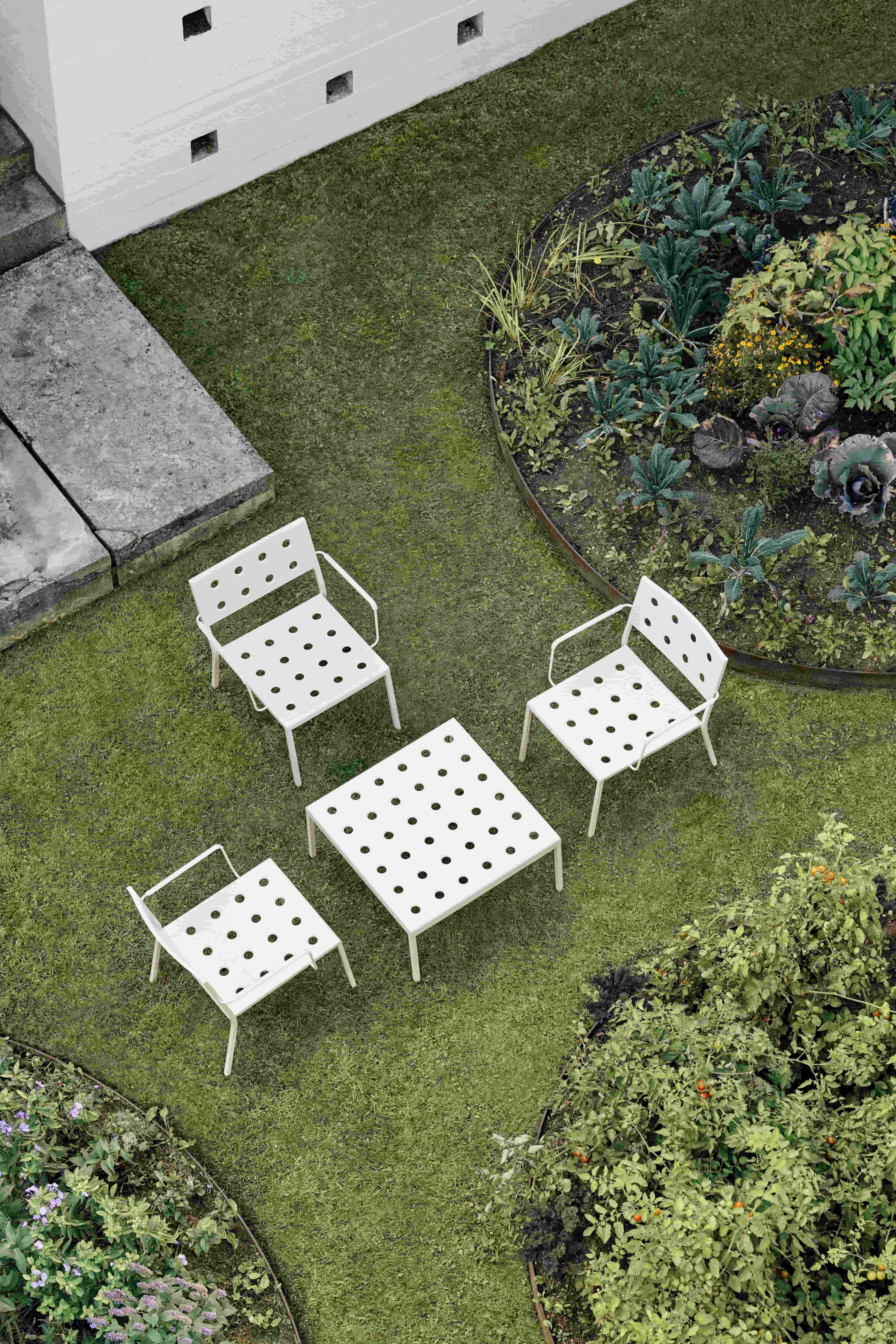 Balcony 是由 Ronan 和 Erwan Bouroullec 為 HAY 設計的戶外家具系列,包括椅子、桌子和休閒椅。 圓孔軟化了方形設計,不僅賦予該系列獨特的表達方式,還強化了結構。 Balcony Low Table 採用粉末塗層鋼製成,塗有戶外底漆,具有最佳的耐用性,非常適合陽台、花園和其他戶外空間。