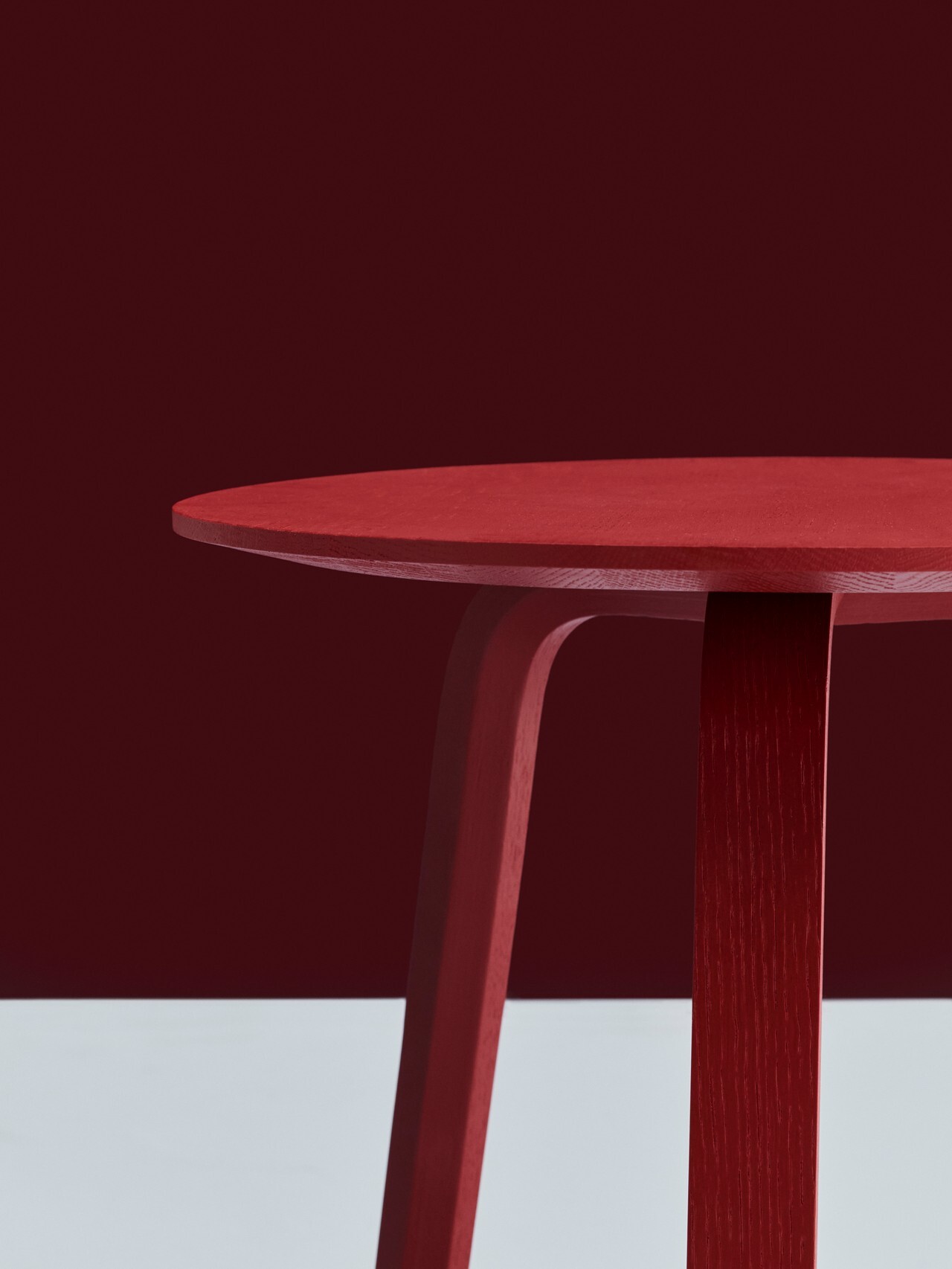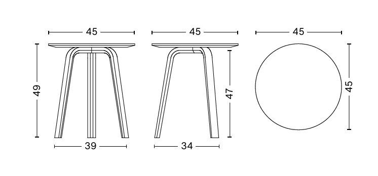 高款版本以 49 公分的高度與 45 公分的圓形桌面,成為沙發旁擺放書籍與咖啡的絕佳夥伴,同樣適合作為床頭櫃使用,兼具美感與日常實用性。桌面採用紋理細膩的實心橡木,桌腿則以橡木單板製成,整體表面施以環保水性漆處理,忠實保留木材的自然色澤與溫潤觸感,同時兼顧耐用與永續。