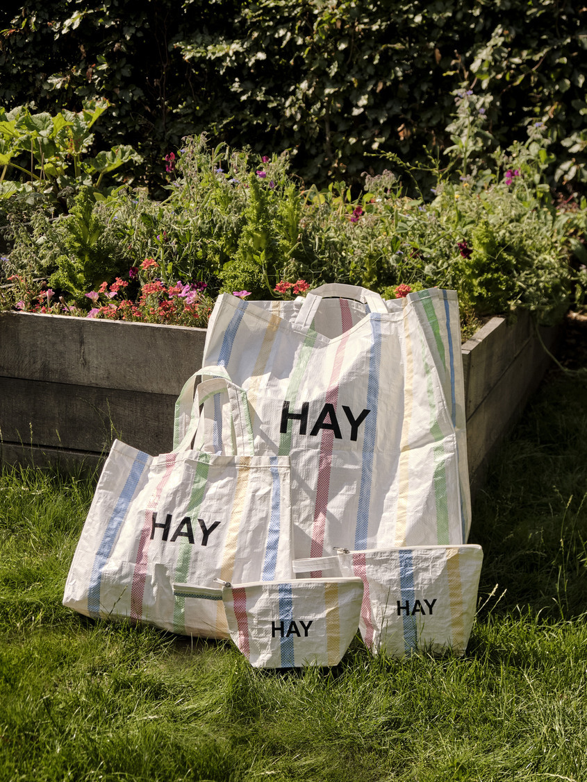 提袋結合環保材質與北歐設計,採用80%回收塑料打造堅韌防潑水袋身,搭配繽紛條紋設計,讓日常攜帶與收納變得更時尚、更環保。