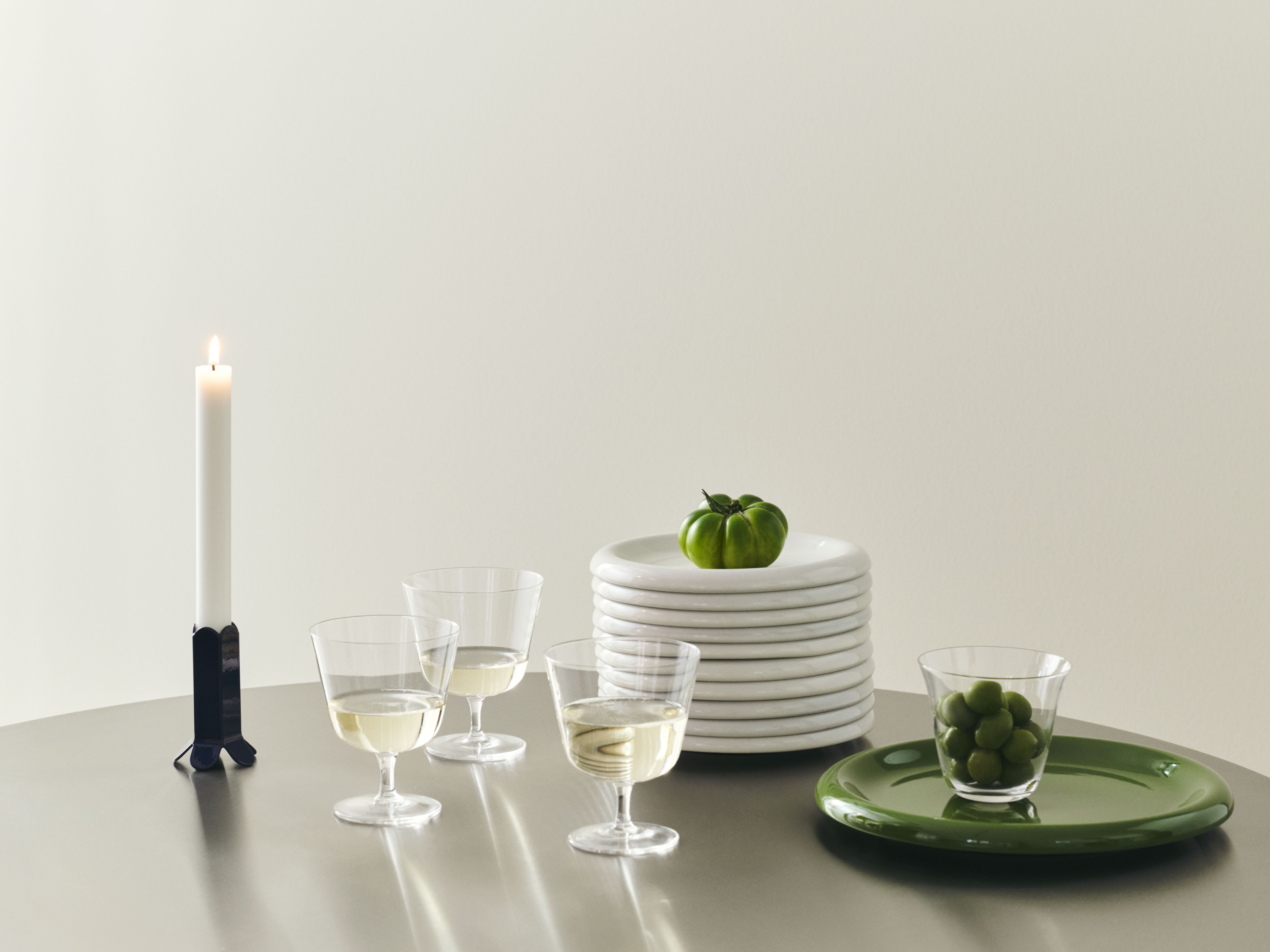 HAY Curve Stem 玻璃高腳杯以向外微翹的杯口線條與優雅酒杯杯腳,呈現簡約而內斂的高雅氣質。