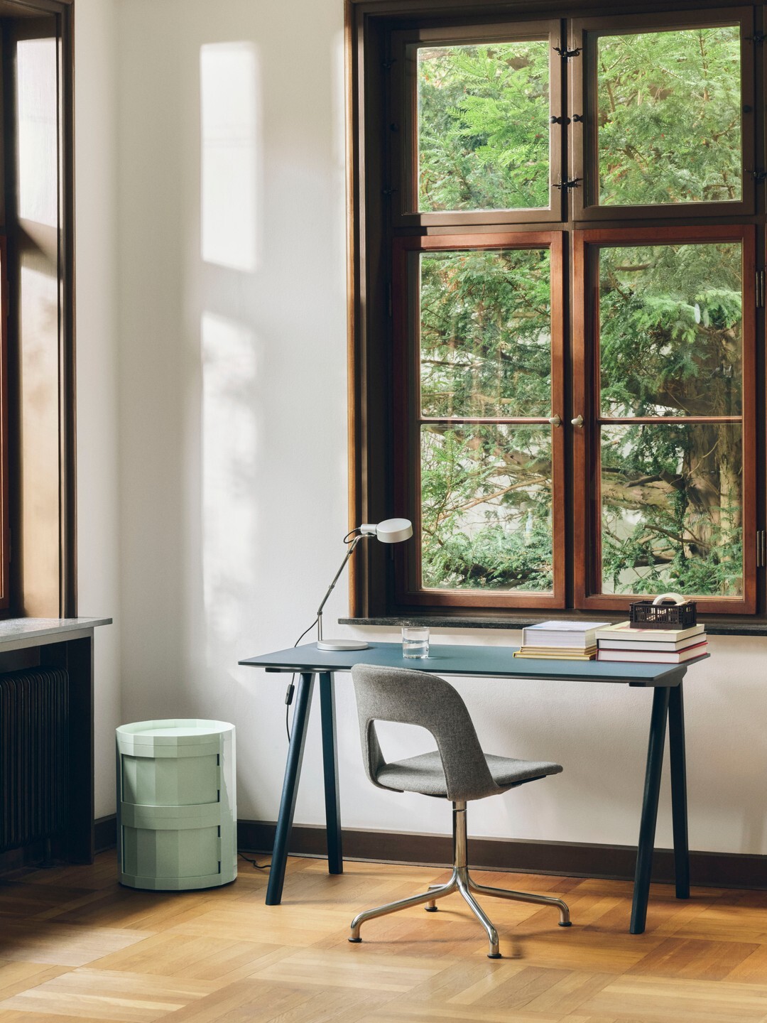 FACET 採用可旋轉式櫃門與可拆卸輪組設計,可依空間需求靈活調整位置與使用方式。無論作為床頭櫃、客廳邊桌,或居家辦公的文具收納,皆能展現北歐設計的輕盈秩序感。