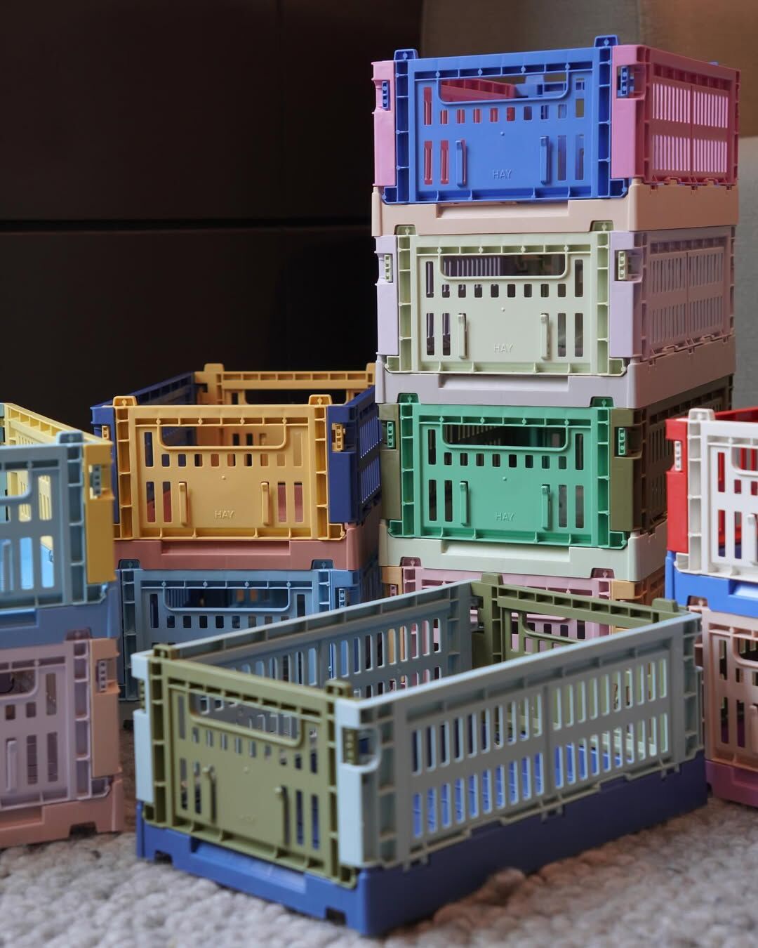 HAY Colour Crate Mix 混色收納盒,透過多彩混搭組合展現丹麥設計的俏皮感。