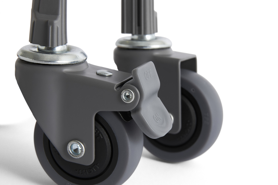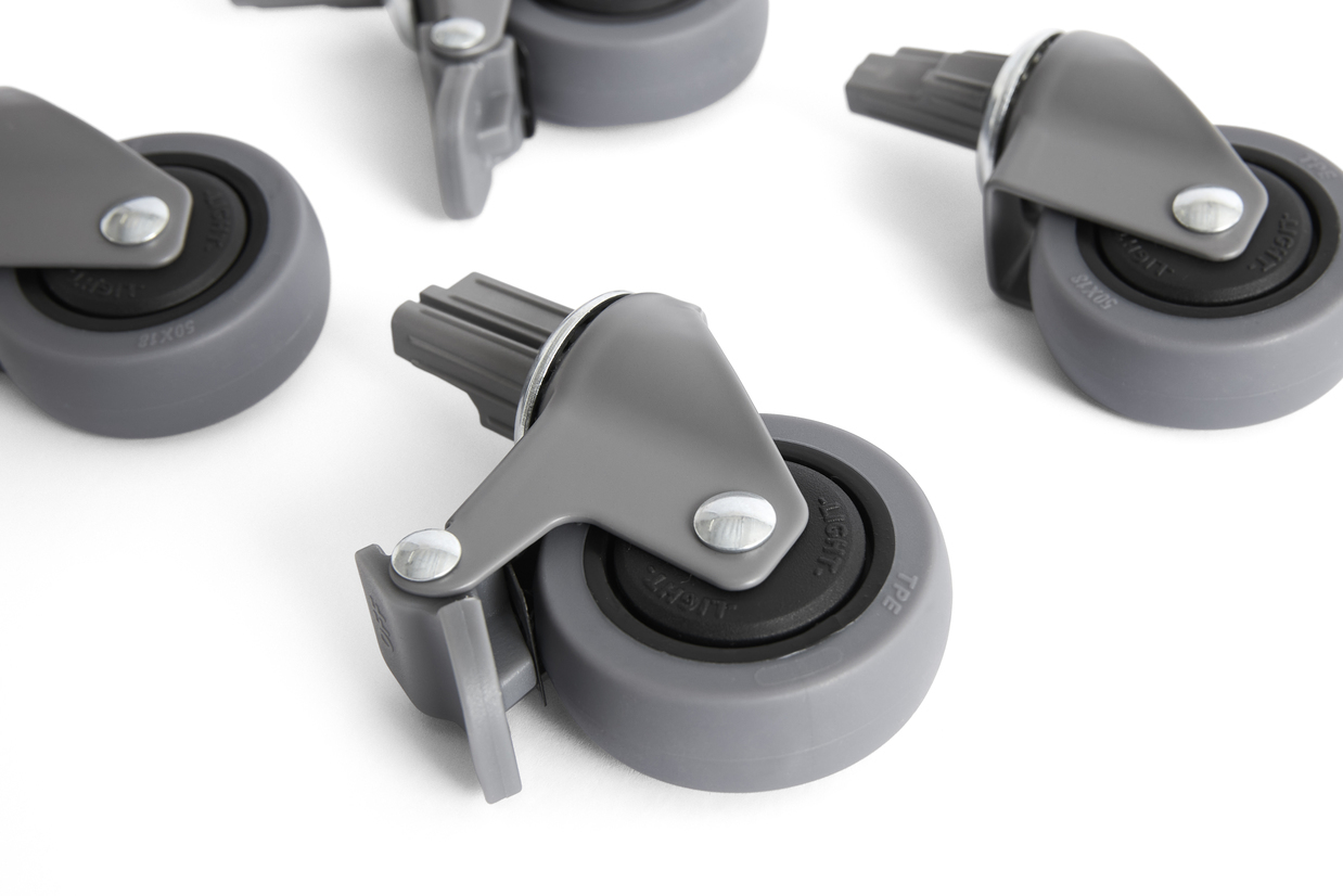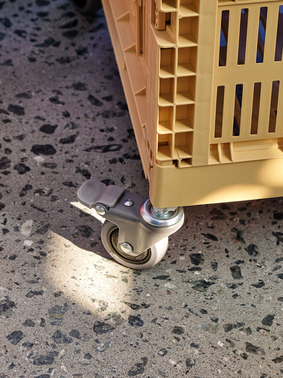 HAY COLOUR CRATE 輪子專為 COLOUR CRATE M/L系列設計,讓收納盒從地面抬高、輕鬆移動,並拓展更多使用與收納方式。採用差插式設計,安裝簡單,其中兩個輪子附有止滑功能,讓收納更加靈活便利。