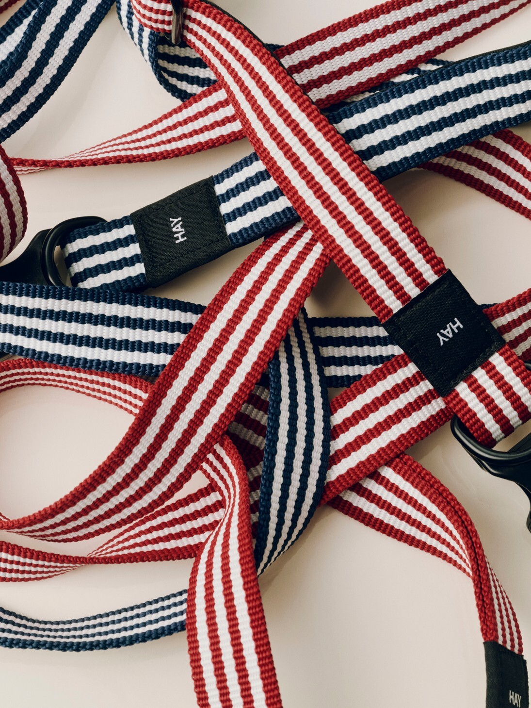 來自丹麥設計品牌 HAY 的條紋平款牽繩,兼具時尚與實用。耐用再生材質、舒適握感與穩固扣環,讓散步既安心又有型。