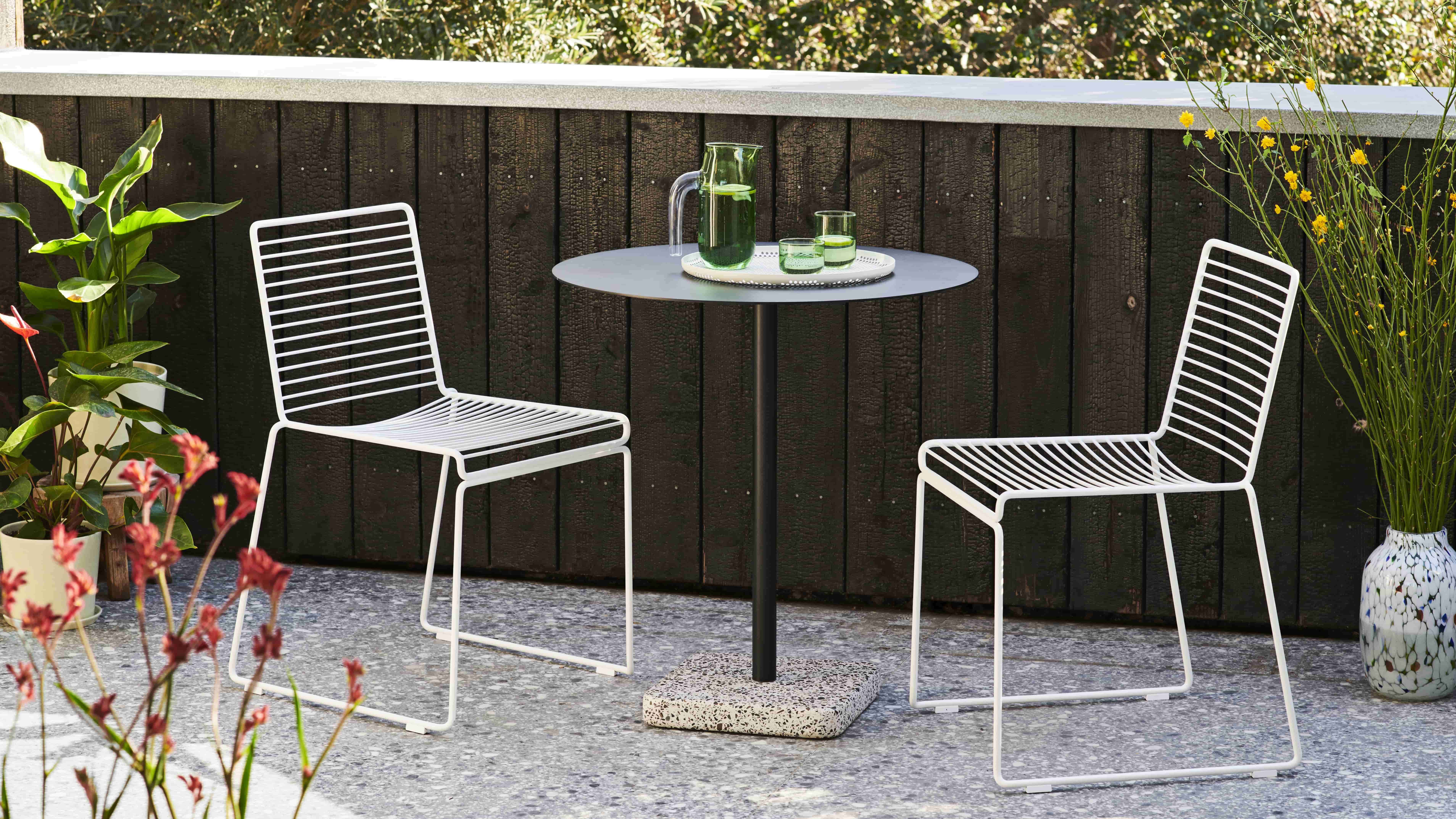 Hee Chair 專為室內或室外使用而設計,將金屬絲包裹成整齊的直線,創造出簡單、通風的形式。 它由堅固的鋼材製成,具有耐用的粉末塗層表面,最多可堆疊 8 張椅子,方便存放。
