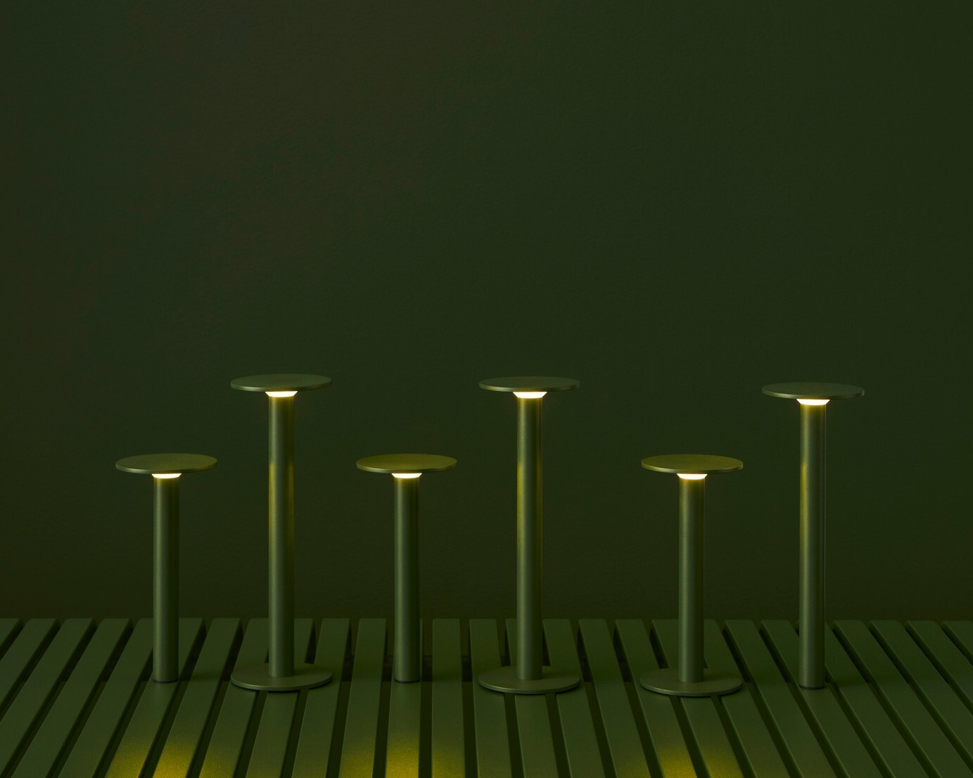 擁有極簡流線外型,為空間引入柔和光線。內建磁鐵可吸附於金屬表面,亦可搭配底座獨立站立。