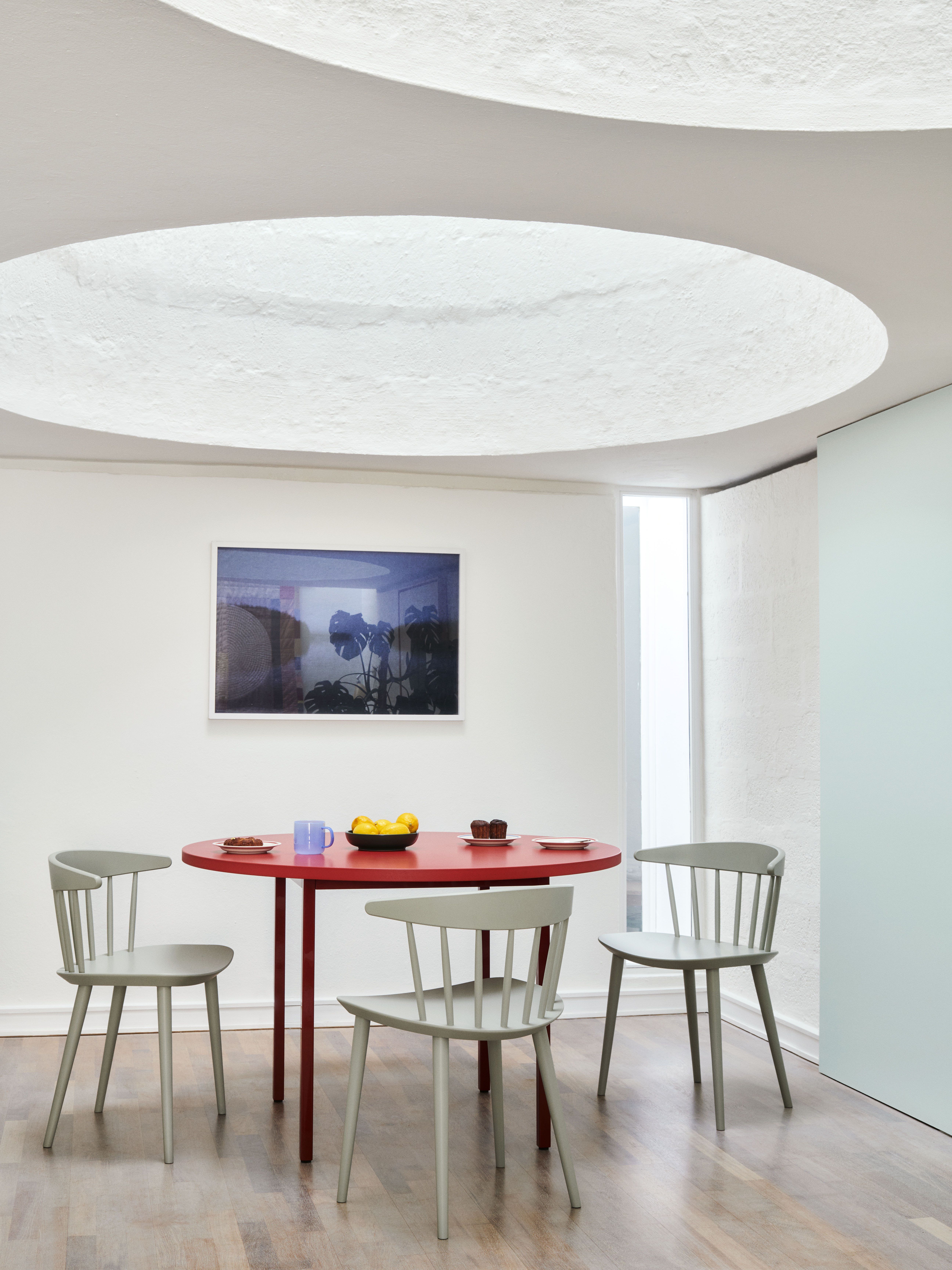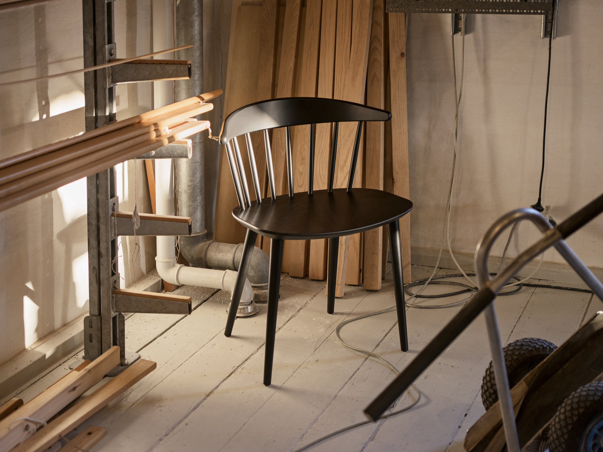 丹麥設計大師 Jørgen Bækmark 的 J104 椅子被設計為餐椅和休閒椅的結合體,HAY 對這款復刻的經典產品採用實心橡木或山毛櫸製成,有各種彩色飾面可供選擇。