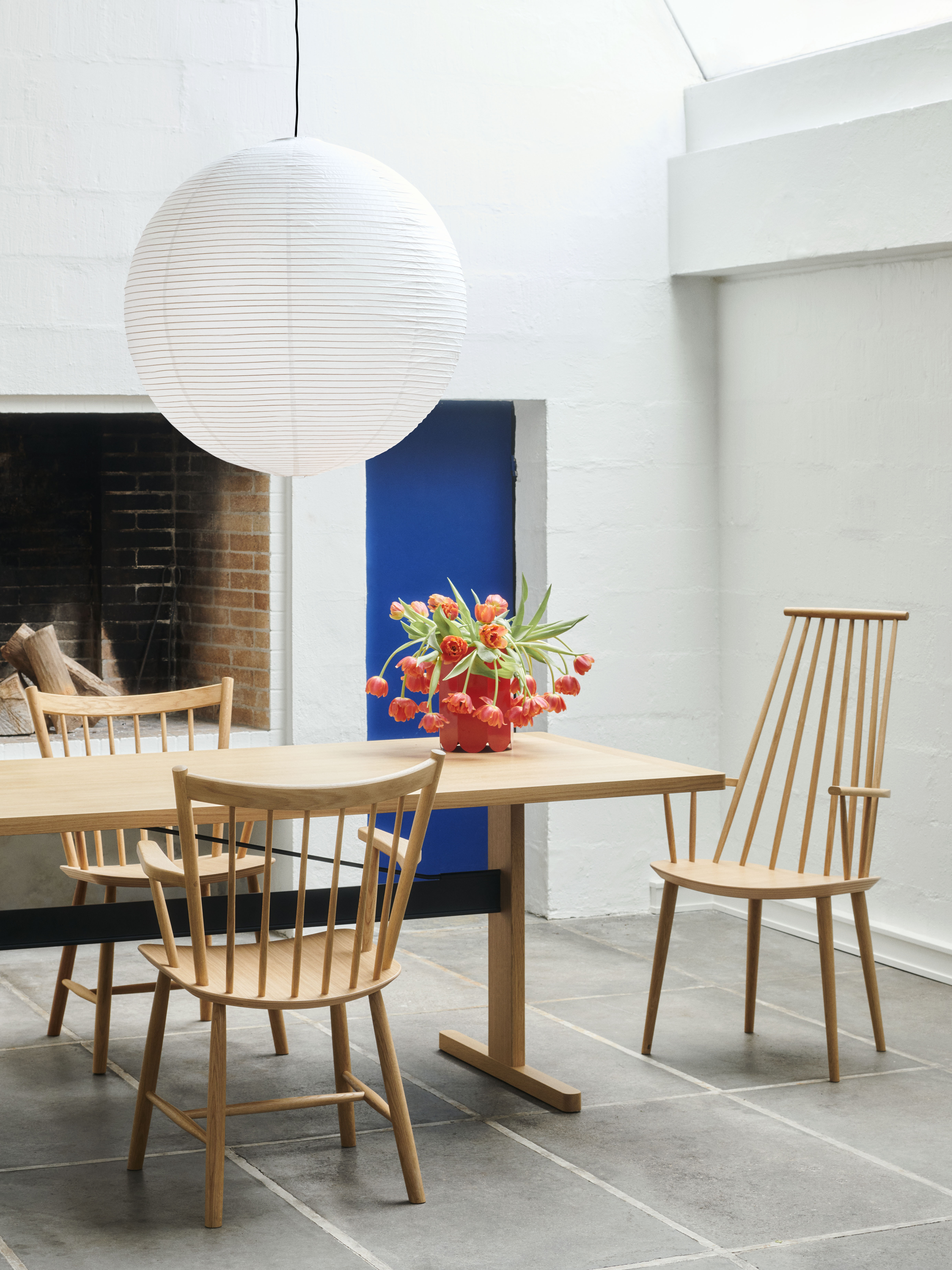 J110 椅子由 丹麥設計大師 Poul M. Volther 設計,是永恆的丹麥經典。 J110 提供休閒椅的舒適性和餐椅的功能性,採用實木框架,高軸靠背設置成小角度,提供舒適的支撐。