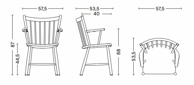 HAY 取得授權並復刻了 Børge Mogensen 經典的 J 42 椅子。 精確的比例和簡單的水平和垂直線條被用來建構彎曲的主軸靠背和角扶手。