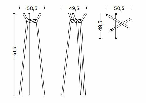 日本設計師倉本仁設計的 KNIT 衣帽架,以三根交錯金屬管形成獨特三維結構,兼具雕塑感與實用性。