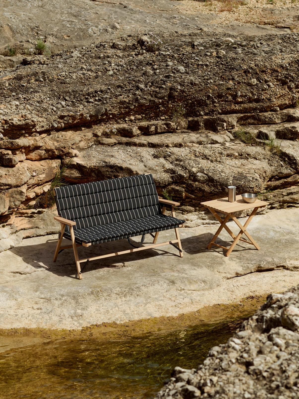 輕量化的實木雙人折疊椅,以堅固櫸木搭配夏日條紋環保織品。附有專屬收納揹袋,無論是家中露台或野餐露營,都能延伸出寬敞舒適的休憩角落。