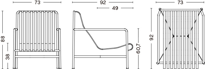 Palissade 由法國設計師 Ronan Bouroullec 和 Erwan Bouroullec 為 HAY 設計,是一系列粉末塗層鋼戶外家具。 Palissade 系列遵循對稱幾何的共同原則,旨在再現相同的視覺簡潔性和核心穩定性。 這款戶外休閒椅是一款時尚、舒適的椅子,有低背或高背可供選擇。