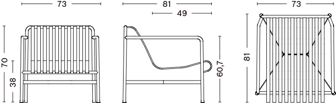 Palissade 由 Ronan Bouroullec 和 Erwan Bouroullec 為 HAY 設計,是一系列粉末塗層鋼戶外家具。 Palissade 系列遵循對稱幾何的共同原則,旨在再現相同的視覺簡潔性和核心穩定性。 這款戶外休閒椅是一款時尚、舒適的椅子,有低背或高背可供選擇。