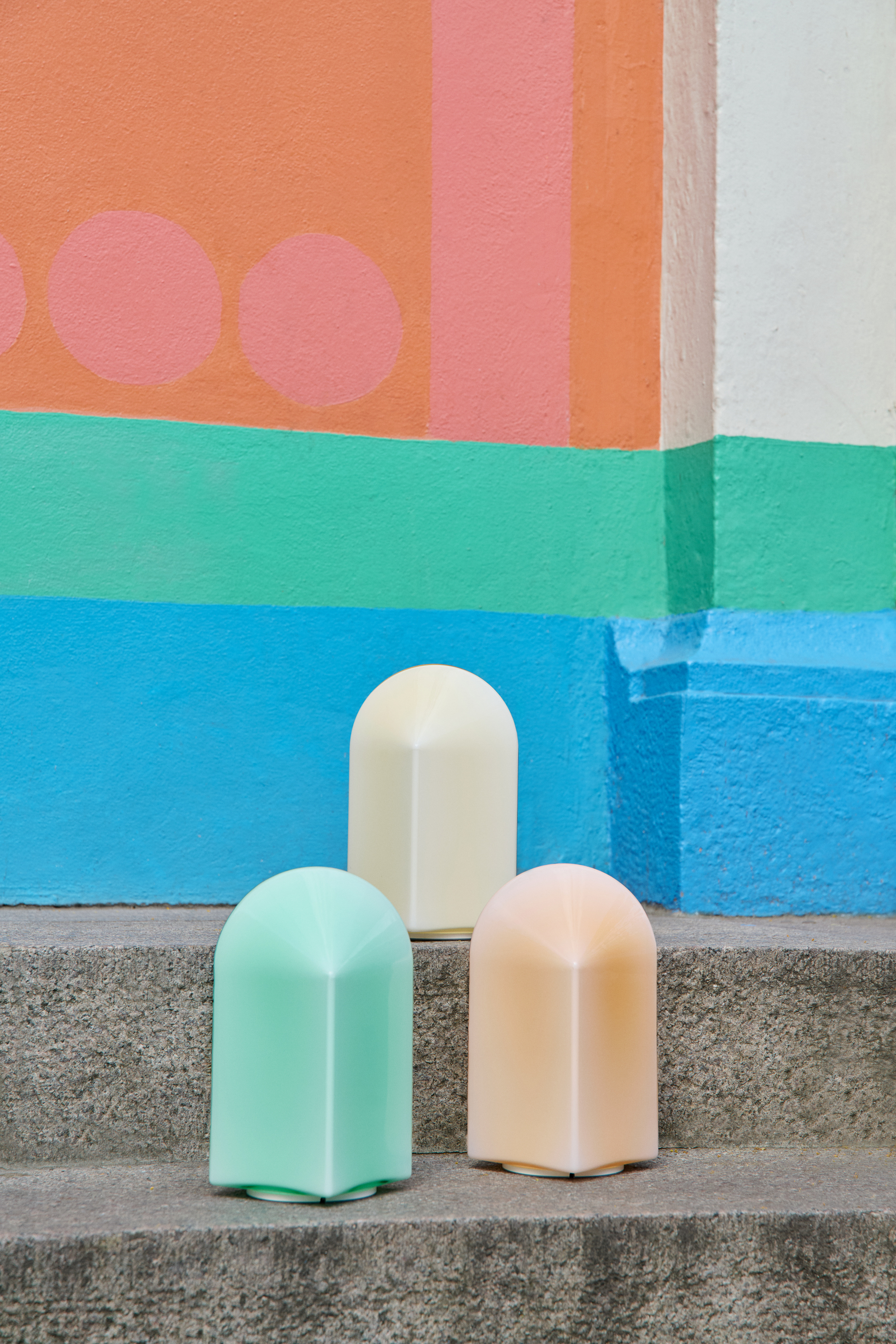 雕塑感十足、大氣非凡的手工便攜式燈,適合室內和室外使用,燈由方形底座和拱形彩色玻璃頂部組成。無論是打開還是關閉,都同樣具有吸引力,可以作為獨立的燈,也可以作為一組燈光雕塑展示。