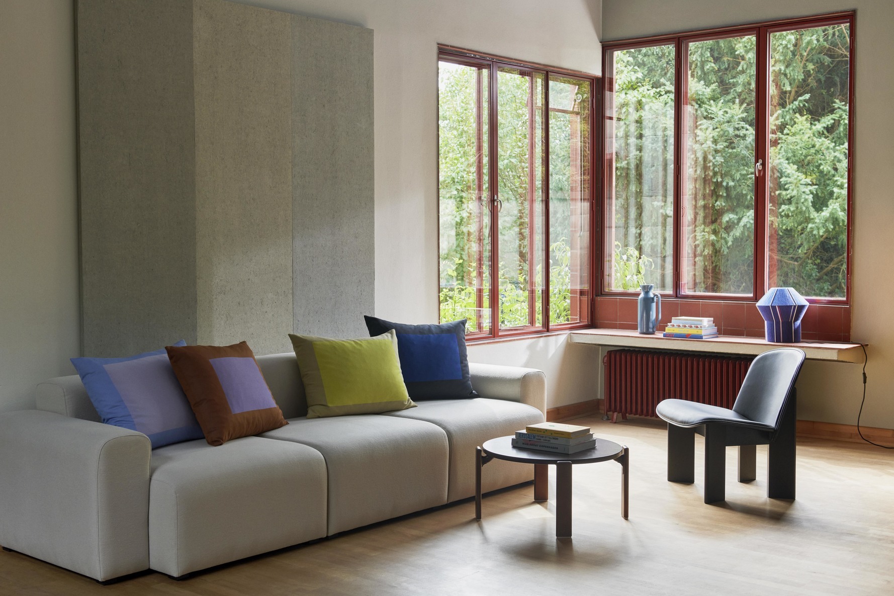 HAY Ram 抱枕以鮮明雙色框架設計詮釋現代幾何美學,有機棉面料搭配羽絨填充,為空間注入活力色彩。