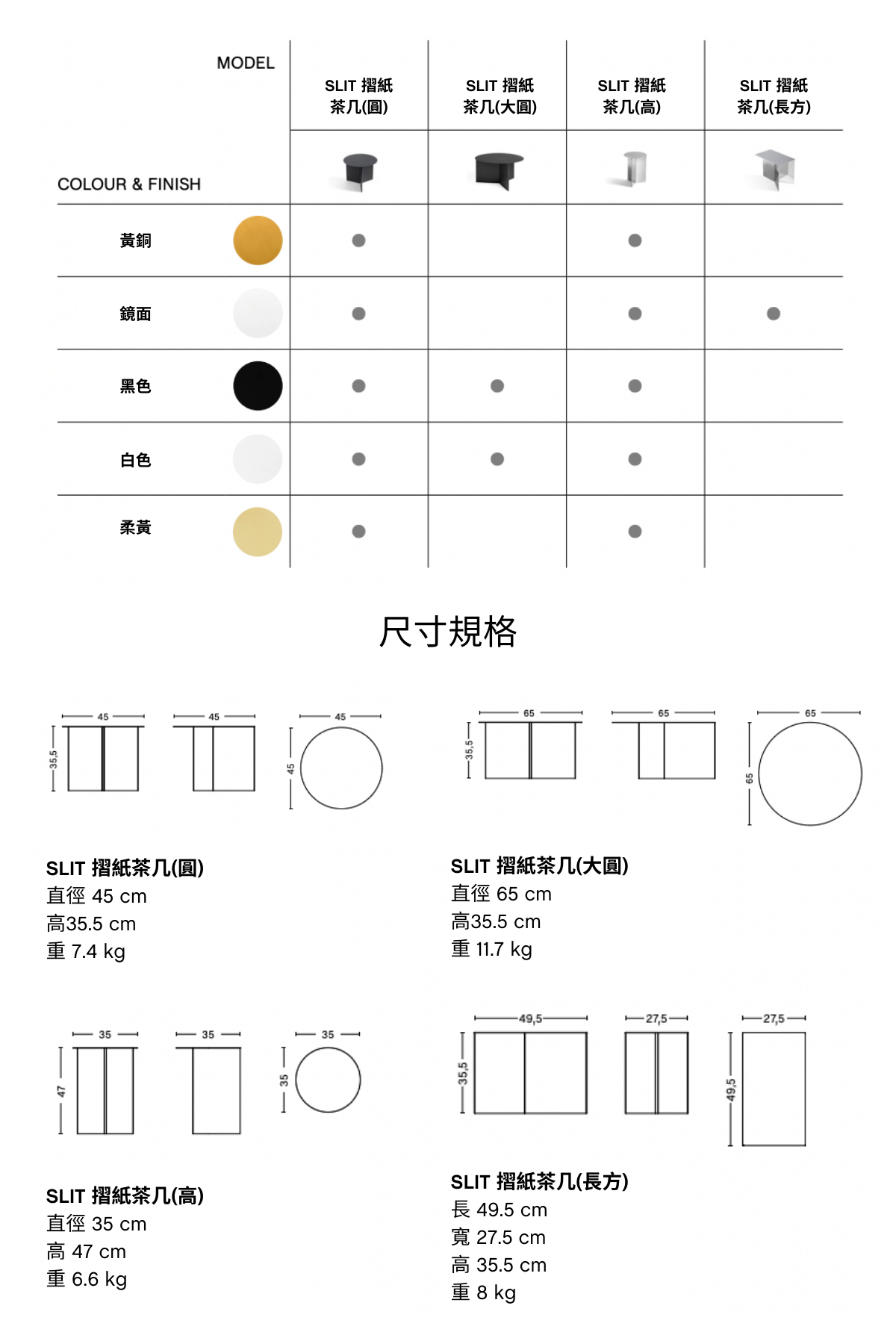 **官網僅售 SLIT 摺紙茶几圓款與高款;長方款及 XL 大圓款請加入 LINE 官方帳號 @haytaiwan,將有專人為您服務。