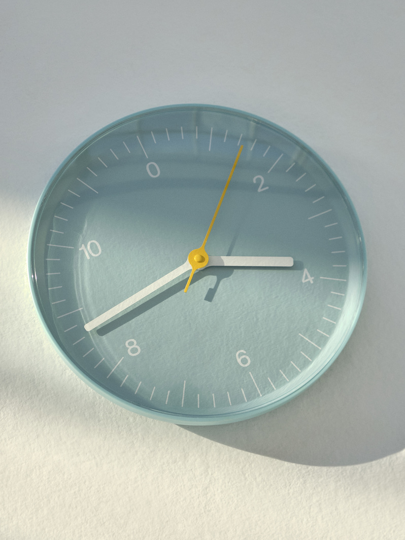 俐落的圓形外觀搭配柔和配色,讓時鐘可以自然地融入牆面,靜靜陪伴日常每一刻的流動。