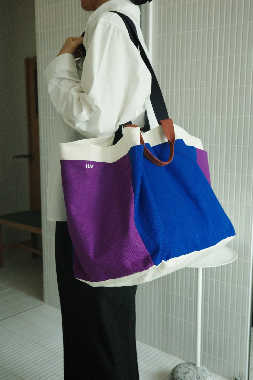 HAY 經典的托特包系列 - Weekend 週末系列,中型尺寸提供充裕的收納空間,厚實有機棉與鮮明拼色設計讓穿搭更有北歐個性!