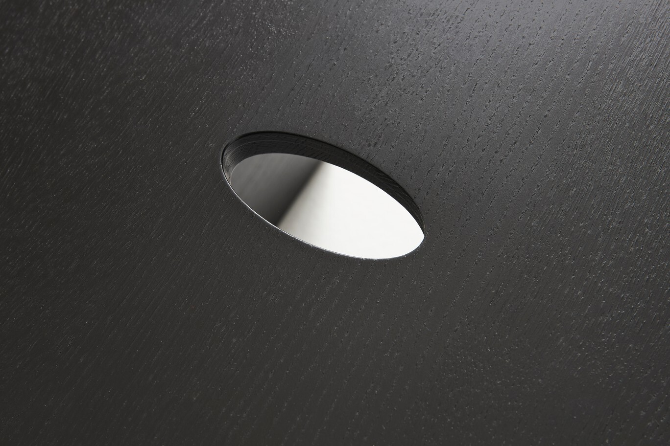 使用實心橡木打造的茶几,以近乎無縫的結構設計,細節處理精確,展現出設計師對比例與形體的美感要求。提供油面橡木與染黑橡木兩種質感選擇。