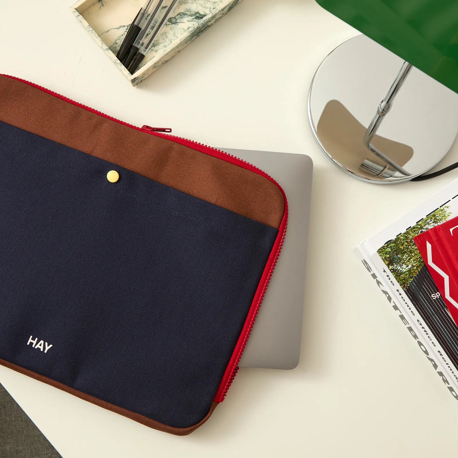 HAY Multi 筆電包為您的筆電提供安全且極具風格的收納方案。外層採用 100% 有機棉材質,觸感溫潤紮實,並貼心設計了額外的外側口袋,方便您整齊收納充電線、滑鼠或個人配件。